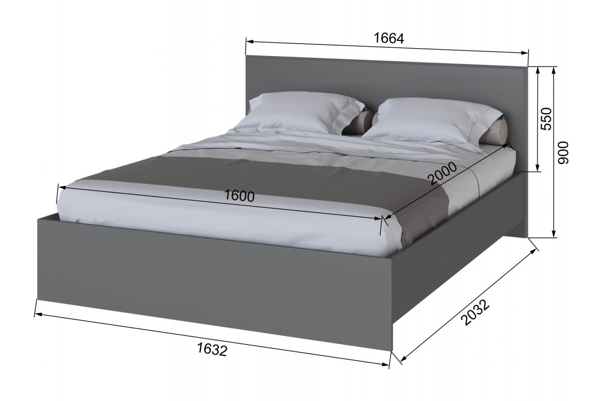 Плейона Кровать 1600 графит серый, артикул 10469683