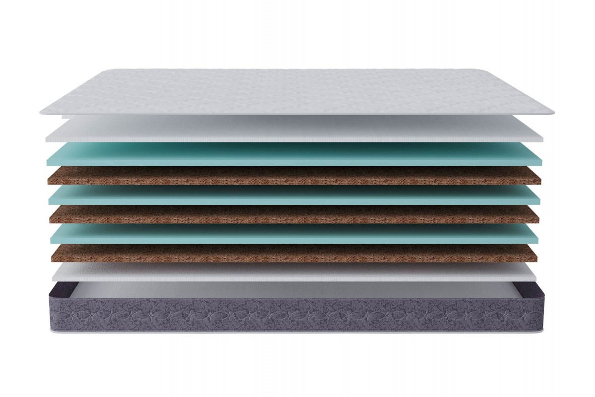 латексированный кокосовый лист 2 см (3 слоя), пена средней жесткости 2 см (3 слоя)